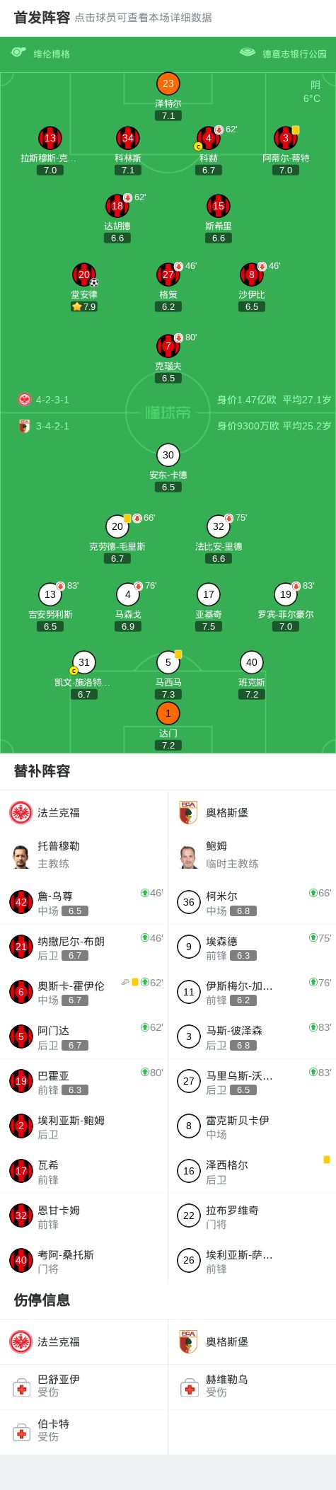 法兰克福1-0奥格斯堡,堂安律制胜,马西马、班克斯进球被吹