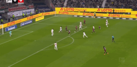 第21分钟,法兰克福右路射门被达门挡出,蒂特跟上射门高出